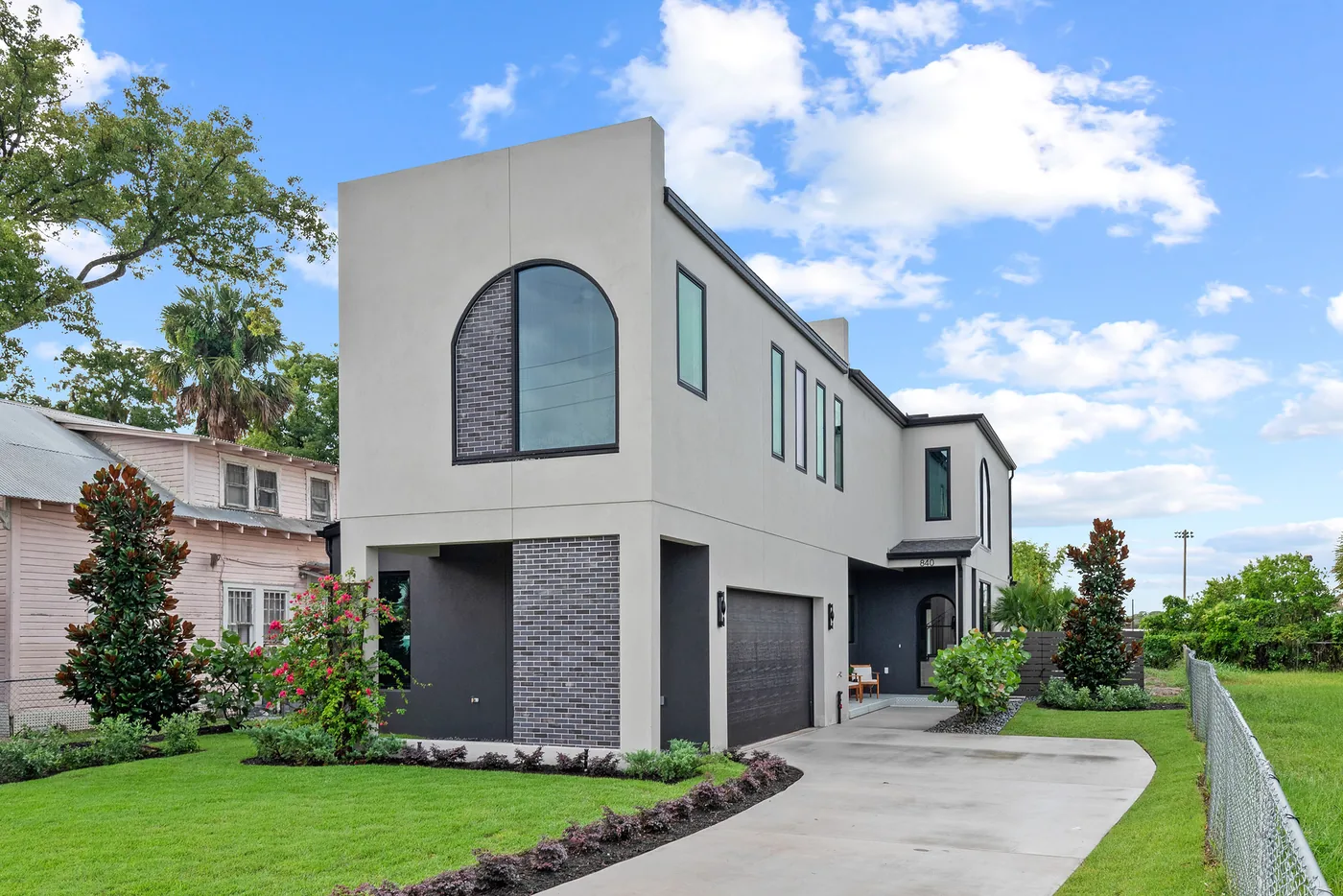 Labeled by most as one of the moodier feeling projects I have completed, Comstock encompassed both a one-of-a-kind exterior façade and complimented this with a dark interior backdrop that allowed the light fixtures, multi-level kitchen island, exquisite tile features, and elegant abstract wallpaper to be the center of attention as you stroll through. This home also featured very large over-sized windows, one of which, directly in the front, would become the detail to give it its memorable curb appeal where this large arch-shaped opening was constructed with ¾ glass and ¼ brick. Once inside this particular window was enjoyed again as you round the top of the stairs and look down a beautiful natural light-filled hallway to the end where the window lies showing off its elliptical custom shape.