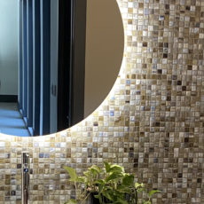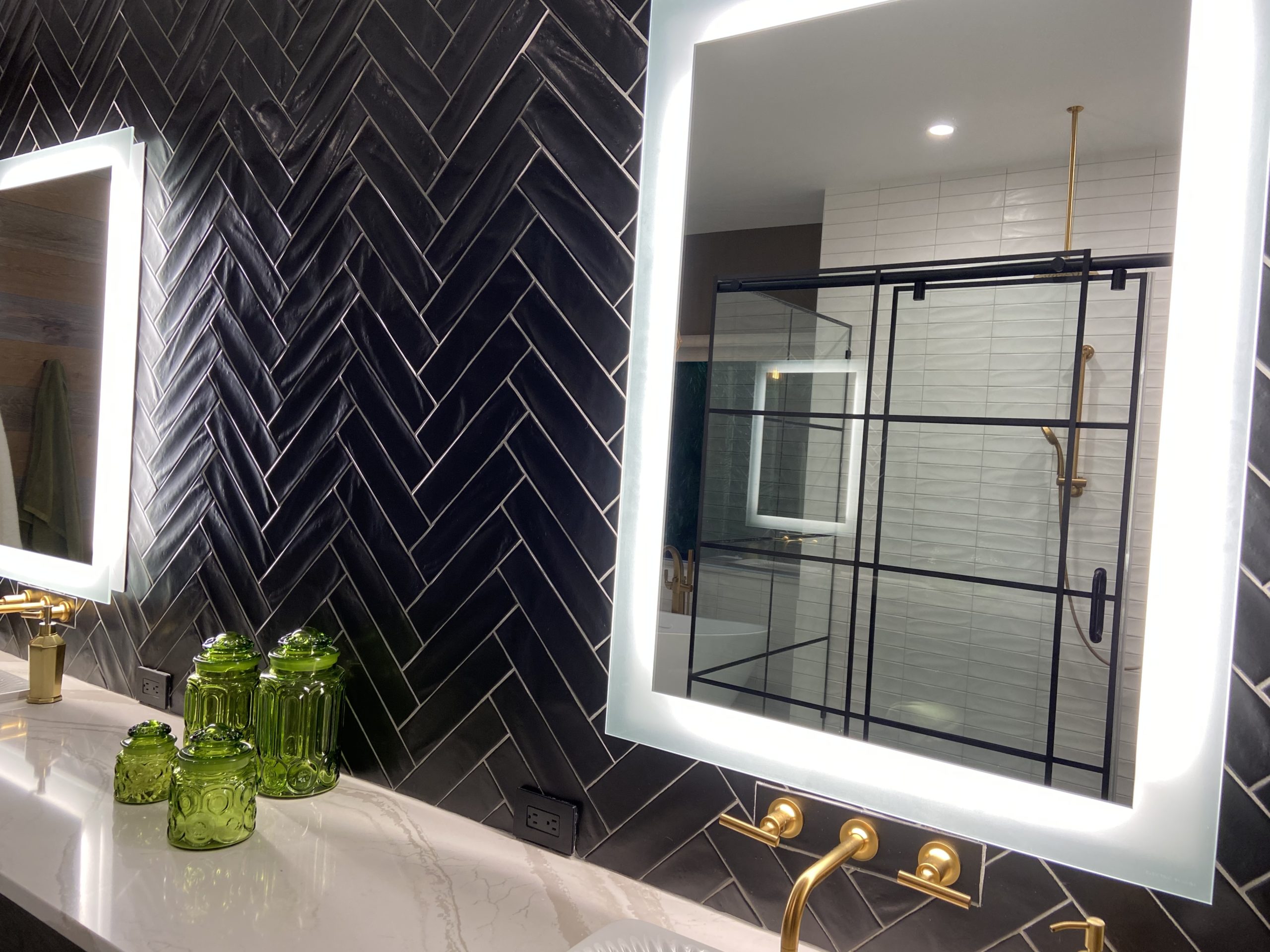 On the interior Elysha will bring the outside in with the use of mermaid green glossy tile found throughout this home’s footprint and tie this element to the exterior with green-toned mid-century block detail around it’s entrance. Also, mimicking the fall of moss on the Oaks out back the vaulted ceiling in the kitchen will be adorned with dark strips of wood in different lengths staggered across the plane giving this area real natural flare!